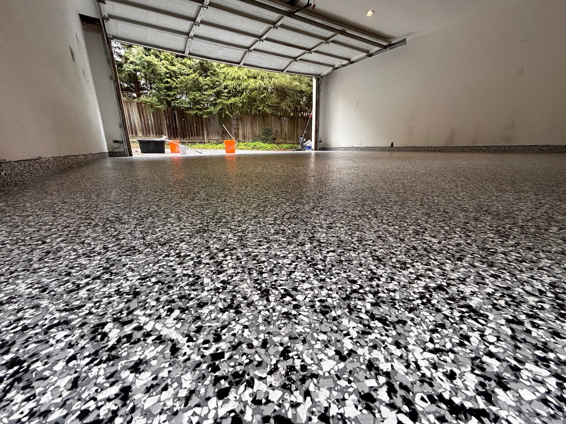 Flake Broadcast – Pigmented Epoxy and Broadcast of Decorative Vinyl Chip